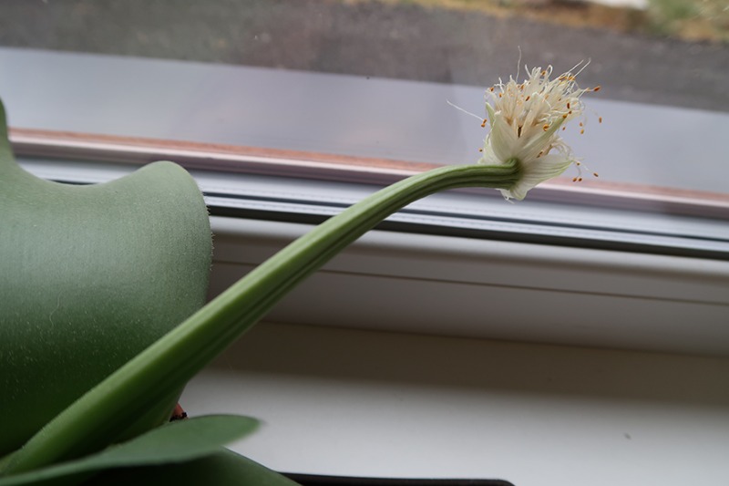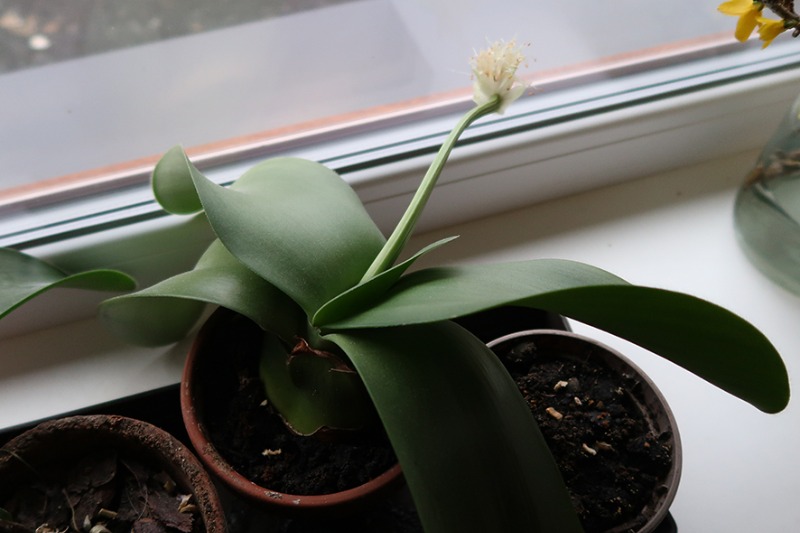 Identifikace pokojové rostliny se širokými listy a bílými květy - fotografie ( BĚLOKVĚT BĚLOKVĚTÝ, Haemanthus albiflos)